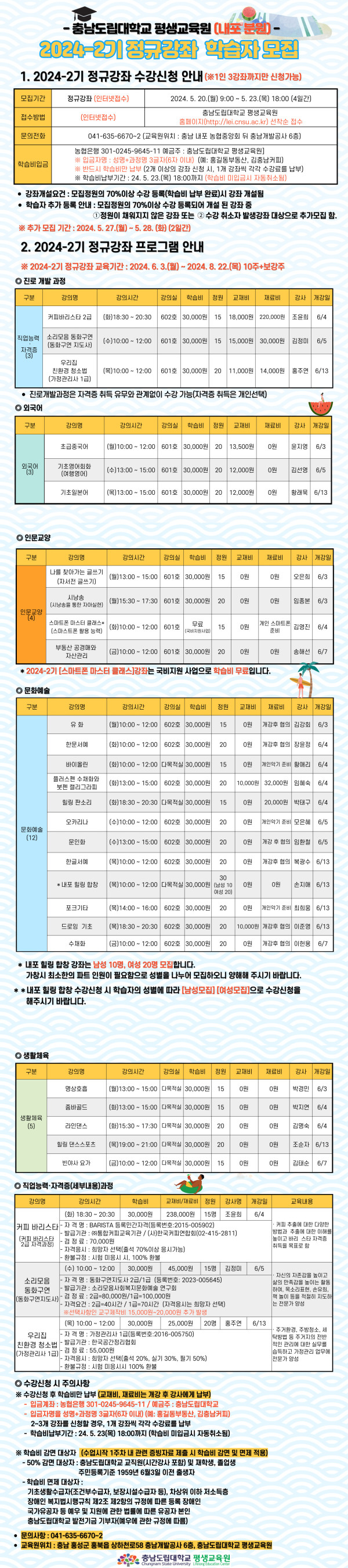 [충남도립대학교 평생교육원]2024-2기 정규강좌 학습자 모집안내 (내포 분원)