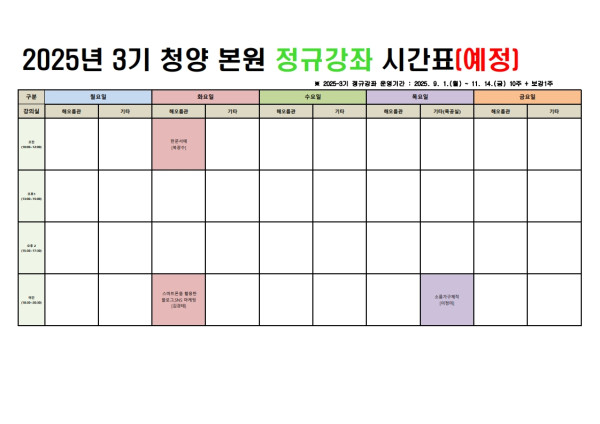 수강신청 기간 : 25. 8. 18.(월) 09:00 ~ 8. 20.(수) 18:00