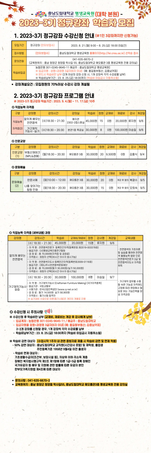 2023-3기 정규강좌 및 2학기 내포시민대학 학습자 모집 안내(대학본원)